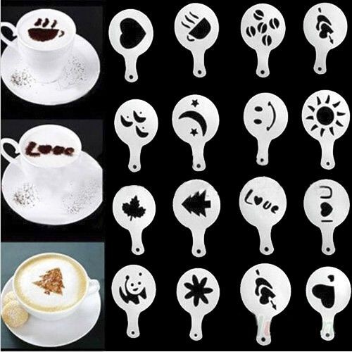 Nhà cửa & Đời sống > Dụng cụ nhà bếp > Dụng cụ pha trà, cà phê || [GIÁ SỈ SALE SHOCK] Bộ 16 khuôn nhựa rắc bột cacao capuchino tạo hình trang trí bánh/cà phê dày dặnCòn hàng