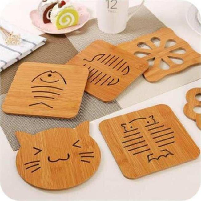 Nhà cửa & Đời sống > Bộ đồ bàn ăn > Khay, tấm lót bàn ăn || (giá sỉ) set 5 lót nồi gỗ, lót xoong gỗ chịu nhiệt-hình dễ thươngCòn hàng