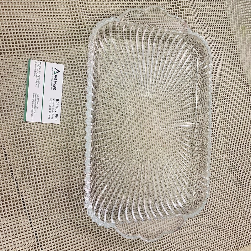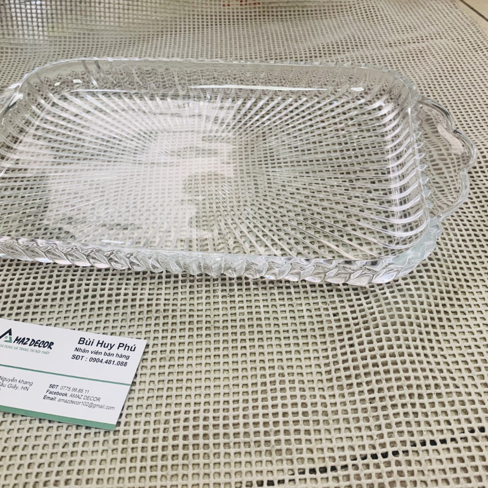 Khay thủy tinh chất lượng đẹp, chắc chắn, chịu nhiệt tốt. Thích hợp để khay trà, hoa quả, bày trang trí.