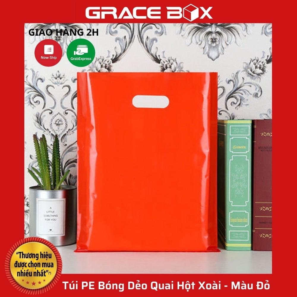 {Giá Sỉ} Túi PE Bóng Dẻo Đỏ - Quai Hột Xoài Đựng Phụ Kiện, Quần Áo - Siêu Thị Bao Bì Grace Box