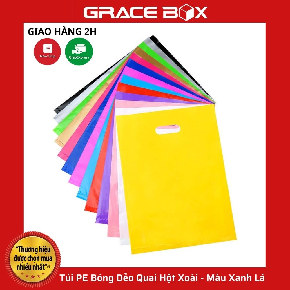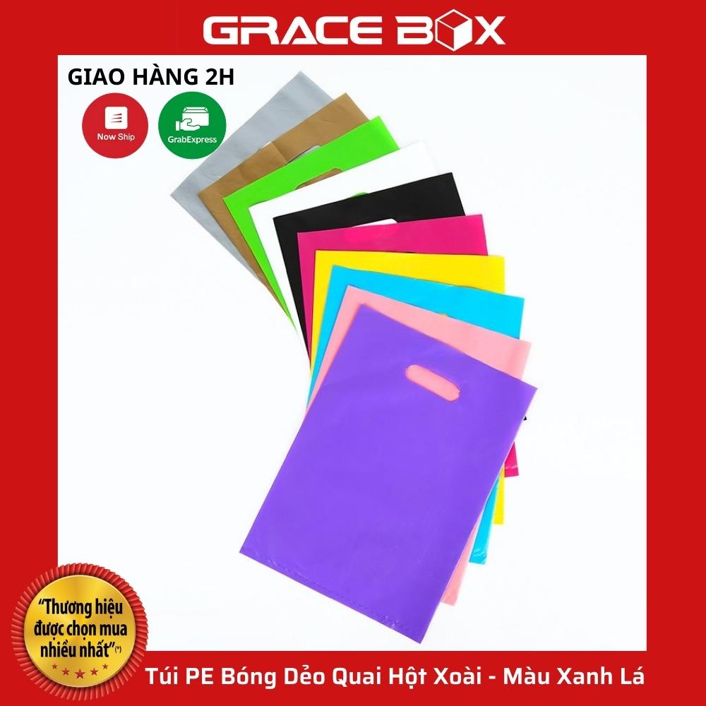 {Giá Sỉ} Túi PE Bóng Dẻo Màu Xanh Lá - Quai Hột Xoài Đựng Phụ Kiện, Quần Áo - Siêu Thị Bao Bì Grace Box