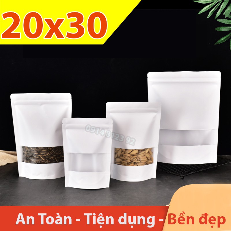 GIÁ SỈ Túi Zipper giấy đáy đứng cửa sổ Trắng - 20x30