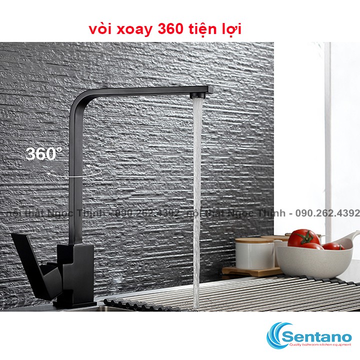 [GIÁ SỈ] Vòi rửa chén bát nóng lạnh kiểu VUÔNG DẸP NANO ĐEN xoay 360 SENTANO STN-404ND CHỐNG BÁM CHỐNG TRẦY