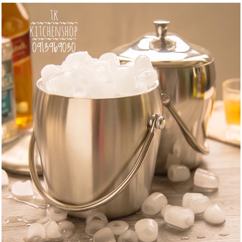 *GIÁ SỈ* Xô đựng đá giữ nhiệt 2 lớp có quai xách inox 304 cao cấp dung tích 1.2L hoặc 2L kèm nắp đậy