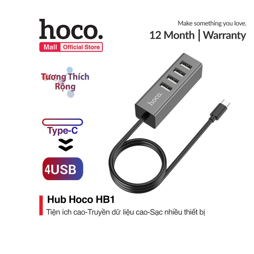 Giới thiệu [ Giá siêu rẻ,chính hãng ] HUB 4 cổng USB Hoco HB1 tương thích cao chất liệu vỏ hợp kim nhôm cao cấp
