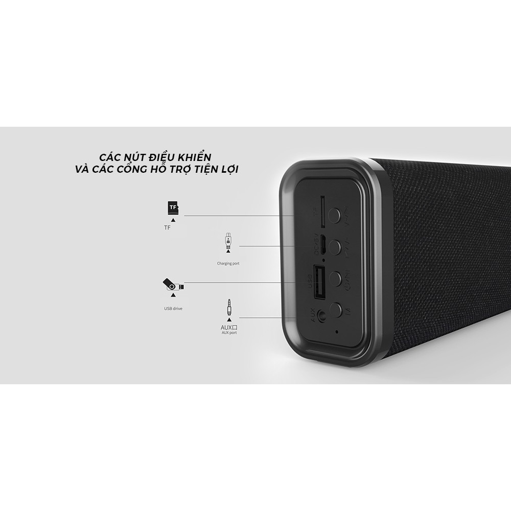 Loa Bluetooth Remax RB-M33 thiết kế dạng dài hình chữ nhật nằm ngang đi kèm với trình điều khiển công suất kép 5Wx2 cho âm thanh nổi mang đến độ lan tỏa âm thanh trong không gian cực tuyệt vời.