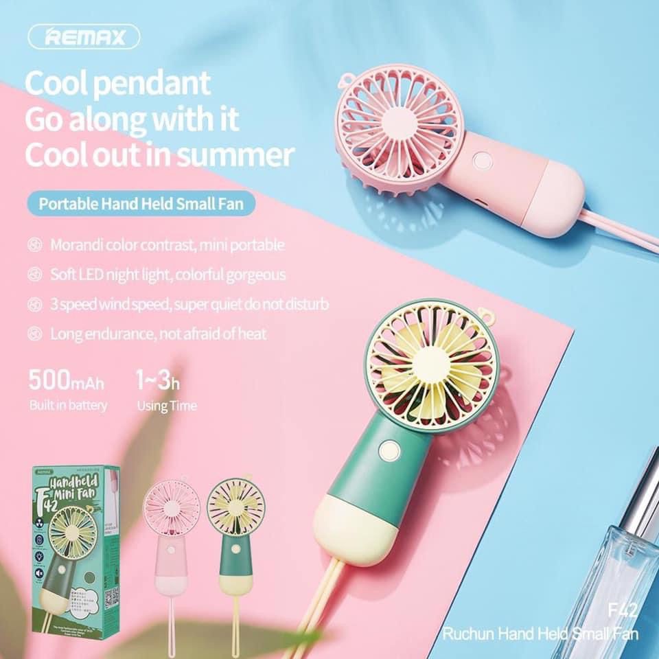 Giới thiệu [ Giá siêu rẻ,chính hãng ] Quạt cầm tay remax F42 có dây đeo pin dung lượng 500mAh - Quạt remax F42 có đèn loại 5 cánh