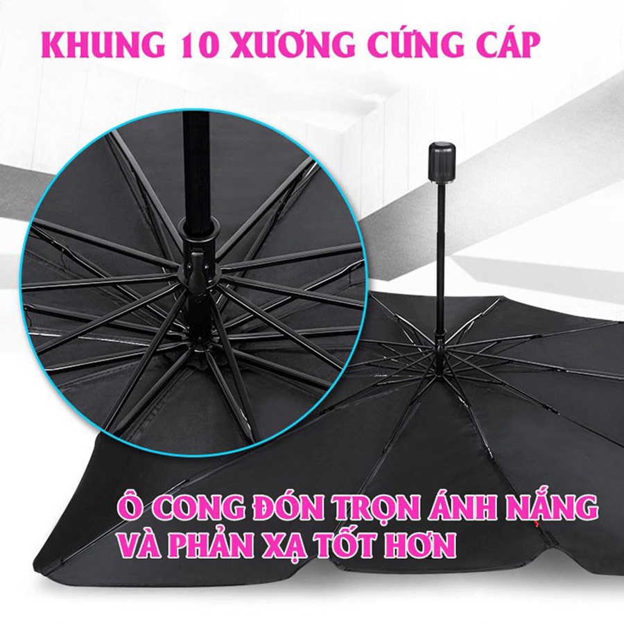 ✔️BỀN CHẮC: Khung 10 xương thép sơn tĩnh điện siêu chắc chắn và ổn định, kết cấu khung cong ô che nắng kính lái NHƯ CHIẾC GƯƠNG CẦU LÕM phản chiếu lại TỐI ĐA ánh sáng chiếu vào.