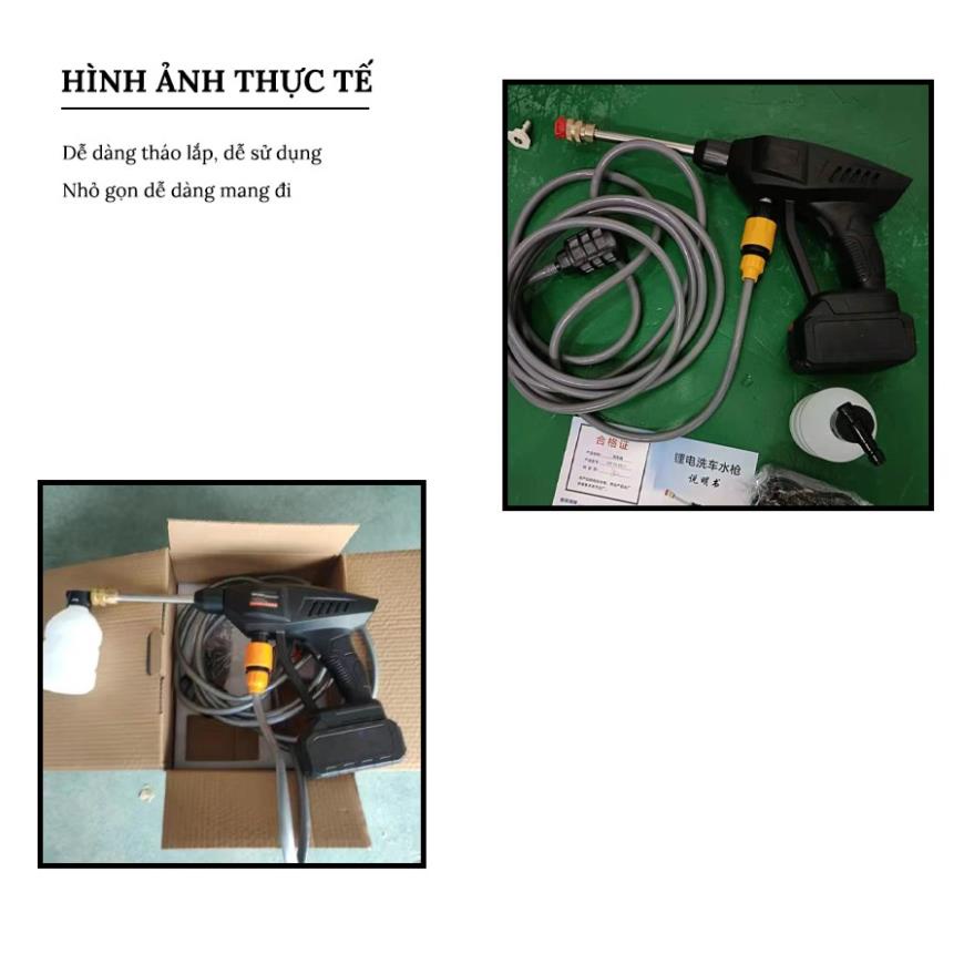 Chúng tôi Cam kết chất lượng uy tín - Giá thành cạnh tranhCông dụng của máy rửa xe áp lực cao mini cầm tay 188vF 240W áp lực nước 30 bar, bơm liên tục 40 phút