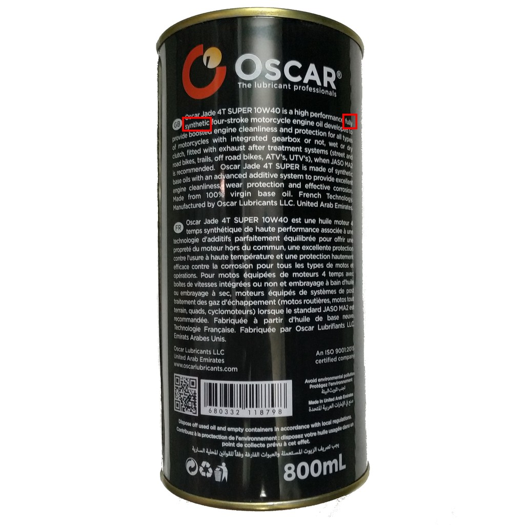Ô tô > Dầu nhớt và phụ gia ô tô > Mỡ & Chất bôi trơn || [GIÁ SIÊU TỐT] Nhớt full tổng hợp 0.8L 10w40 xe số Oscar Jade 4T Super - dầu nhớt xe côn tay, xe sốCòn hàng