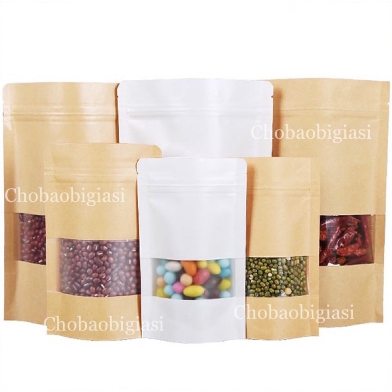{Giá Sốc 1kg/ size} Túi zipper giấy Kraft Màu VÀNG/TRẮNG đáy đứng cửa sổ tràn có CÁN MÀNG - CHỐNG THẤM NƯỚC (sp y hình)