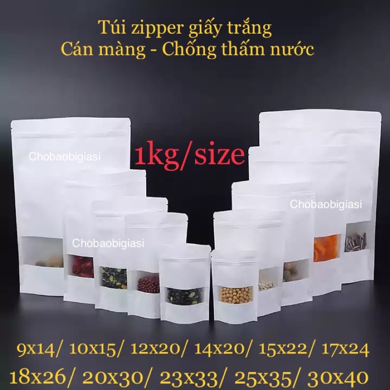 Nhà cửa & Đời sống > Dụng cụ chăm sóc nhà cửa > Túi nilon & túi rác || {Giá sốc 1kg/ size} Túi zipper giấy Kraft MÀU TRẮNG đáy đứng cửa sổ tràn có CÁN MÀNG - CHỐNG THẤM NƯỚC (sp y hình)Còn hàng