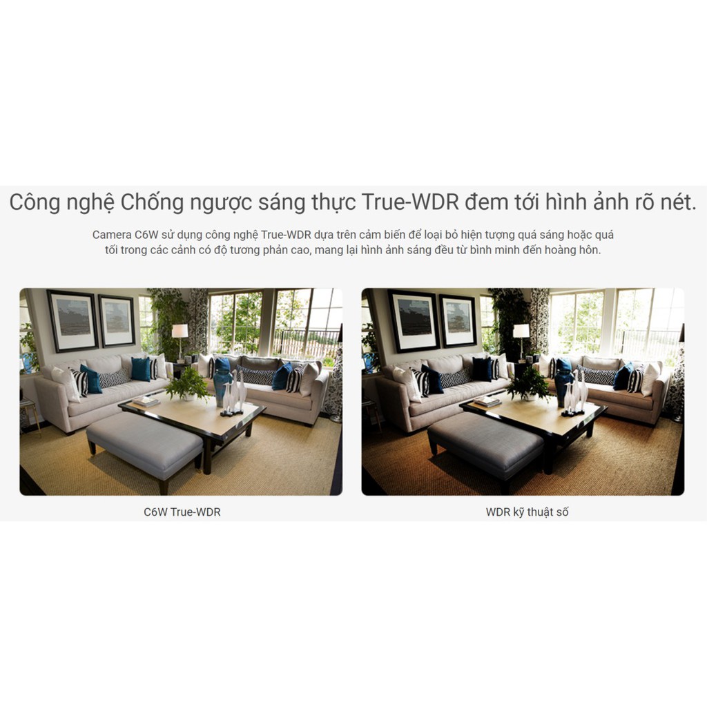3) Chống Ngược Sáng Thực: C6W có trang bi tính năng chống ngược sáng thực giúp camera xem rỏ hơn trong điều kiện ngược sáng chói sáng (lắp từ trong nhà nhìn ra cửa).