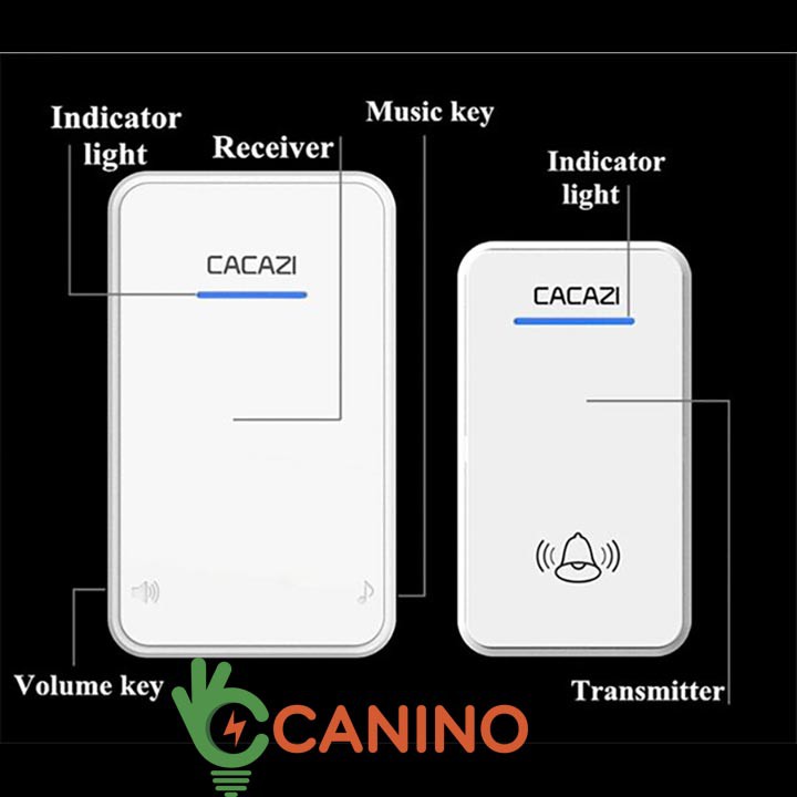 Chuông cửa không dây CACAZI A8 với thiết kế và kiểu dáng hiện đại, chức năng điều chỉnh âm lượng, thay đổi kiểu chuông đơn giản hơn bao giờ hết, khả năng bắt tín hiệu từ xa bằng sóng RF tần số 433Mhz cho hiệu năng tốt và độ ổn định cao.Chuông cửa không dây CACAZI A8 gồm 2 bộ phận, bộ phận bộ phận Transmitter ( nút bấm) sử dụng pin 12v cho hiệu năng sử dụng tốt hơn, bộ phận Receiver sử dụng nguồn điện 220v phích cắm chân dẹt thông dụng, ở điều kiện môi trường lý tưởng khoảng cách nhận tín hiệu giữa 2 bộ phận này lên đến 300m, tuy nhiên ra ngoài thực tế khoảng cách đó sẽ bị giảm đi tùy theo điều kiện vật cản của môi trường.