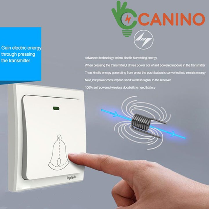 Chuông cửa không dây Linptech cao cấp, không cần dùng điện hay pin, sản phẩm sử dụng công nghệ mới nhất, tự tạo ra dòng điện từ cơ năng của người bấm, giúp tiết kiệm điện năng, công sức thay pin, bảo vệ môi trường và hiệu quả kinh tế cho người sử dụng.