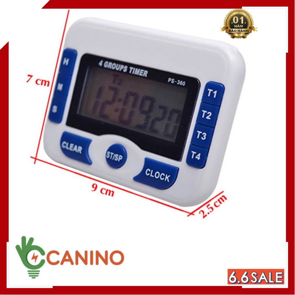 Đồng hồ bấm giờ đếm ngược mini PS-360 với màn hình lớn hơn, 4 chế độ hẹn giờ độc lập, kiểu dáng hiện đại cho hiển thị thời gian thực ngay trên màn hình chính.- Hẹn giờ, đếm ngược thời gian (timer) với độ chính xác đến từng giây, màn hình lớn hiển thị rõ ràng, nút bấm dễ dàng thao tác.
