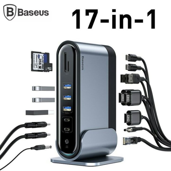 Máy tính & Laptop > Phụ Kiện Máy Tính > Bộ chia cổng USB & Đọc thẻ nhớ || [GIÁ SỐC - HÀNG CHÍNH HÃNG] Hub chuyển đổi đa năng hầu hết các thiết bị số 16 trong 1 và 17 trong 1 thương hiệu BaseusCòn hàng