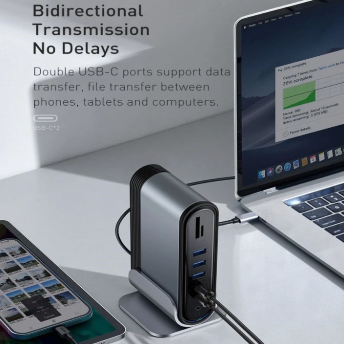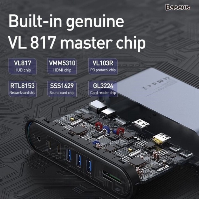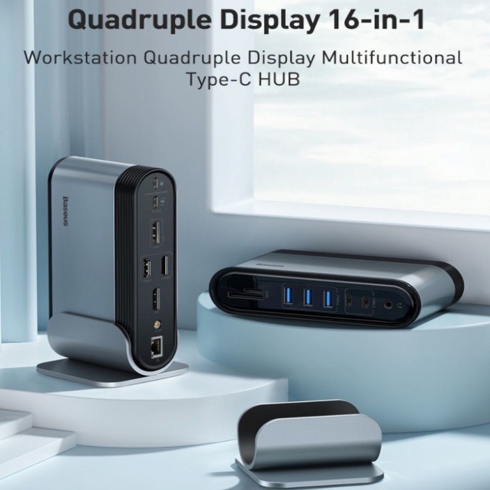 - Với Hub chuyển đa năng Baseus Working Station 16 in 1 và 16 in 1 Multifunctional bạn có thể dễ dàng xuất hình ảnh, âm thanh độ nét cao qua cổng HDMI/ VGA/ AUX 3.5mm, đồng bộ và chia sẽ dữ liệu/ hình ảnh từ thẻ nhớ, các thiết bị lưu trữ. Ngoài ra bộ HUB còn được trang bị cổng mạng LAN có dây (RJ-45) cho phép bạn có thể kết nối mạng ở những nơi không có Wifi