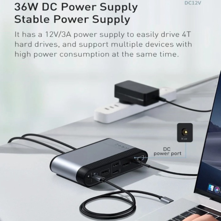 - 17 in 1 Model (CAHUB-DG0G): USB 3.0*3 + USB 2.0*2 + HDMI*3 +TF/SD Card Reader + RJ45 +PD + PC +3.5mm Jack + DC Port + PD Cable + UK/EU Plug + CN DC Cord (Suit)