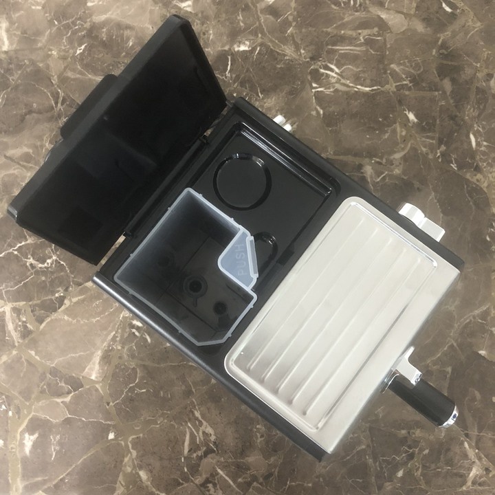 ✍ Ngoài ra, máy pha còn trang bị khay hứng nước nhỏ giọt có thể tháo rời, cho phép sử dụng ly hoặc tách cao đến 13cm. Bình đựng nước có thể lấy khỏi máy với mực nước có thể nhìn thấy (bộ lọc chống vôi hóa tùy chọn) nhờ vào thiết bị cất trữ phụ kiện tiện lợi.