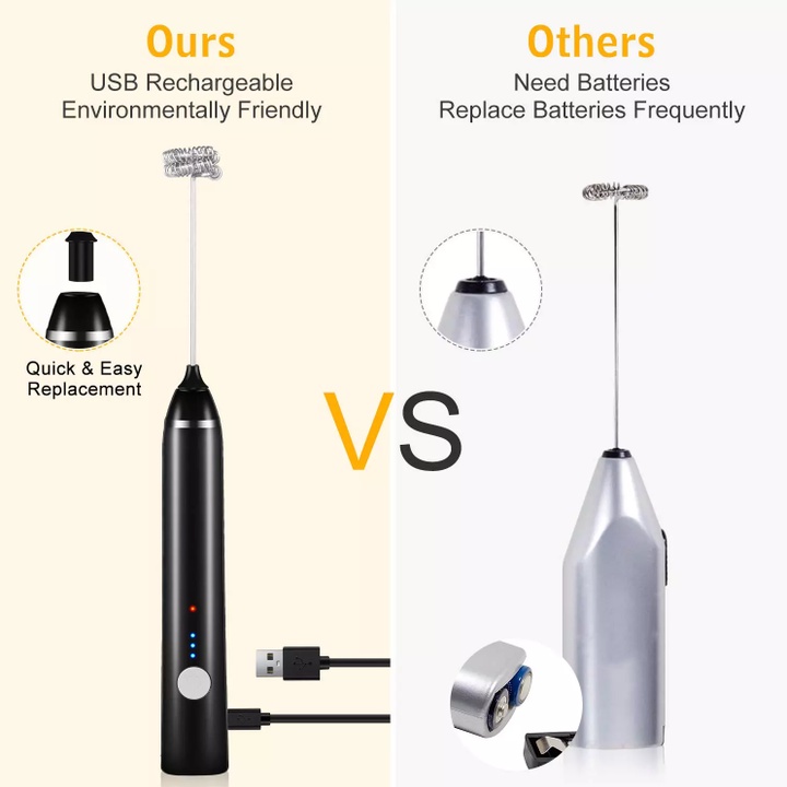 ✍ Máy tạo bọt sữa cầm tay đa năng sử dụng điện sạc USB dùng tay để tạo bọt thủ công khi chế biến một số món ăn, thức uống thơm ngon bổ dưỡng cho gia đình.