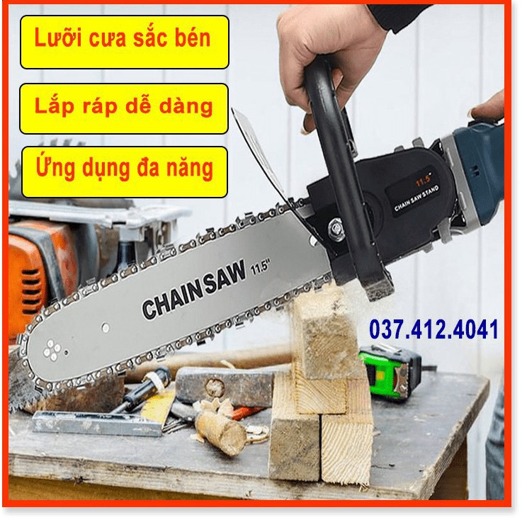 Lưỡi cưa xích gắn máy mài CHAIN SAW+ Công dụng : Giúp biến đổi máy mài góc thành máy cưa xích chuyên nghiệp
