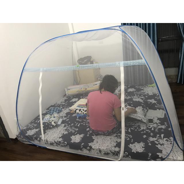 - Màn chụp tự bung có 1 cửa có khóa, giúp ra vào dễ dàng và không bị muỗi xâm nhập, thuận tiện cho quá trình sử dụng.