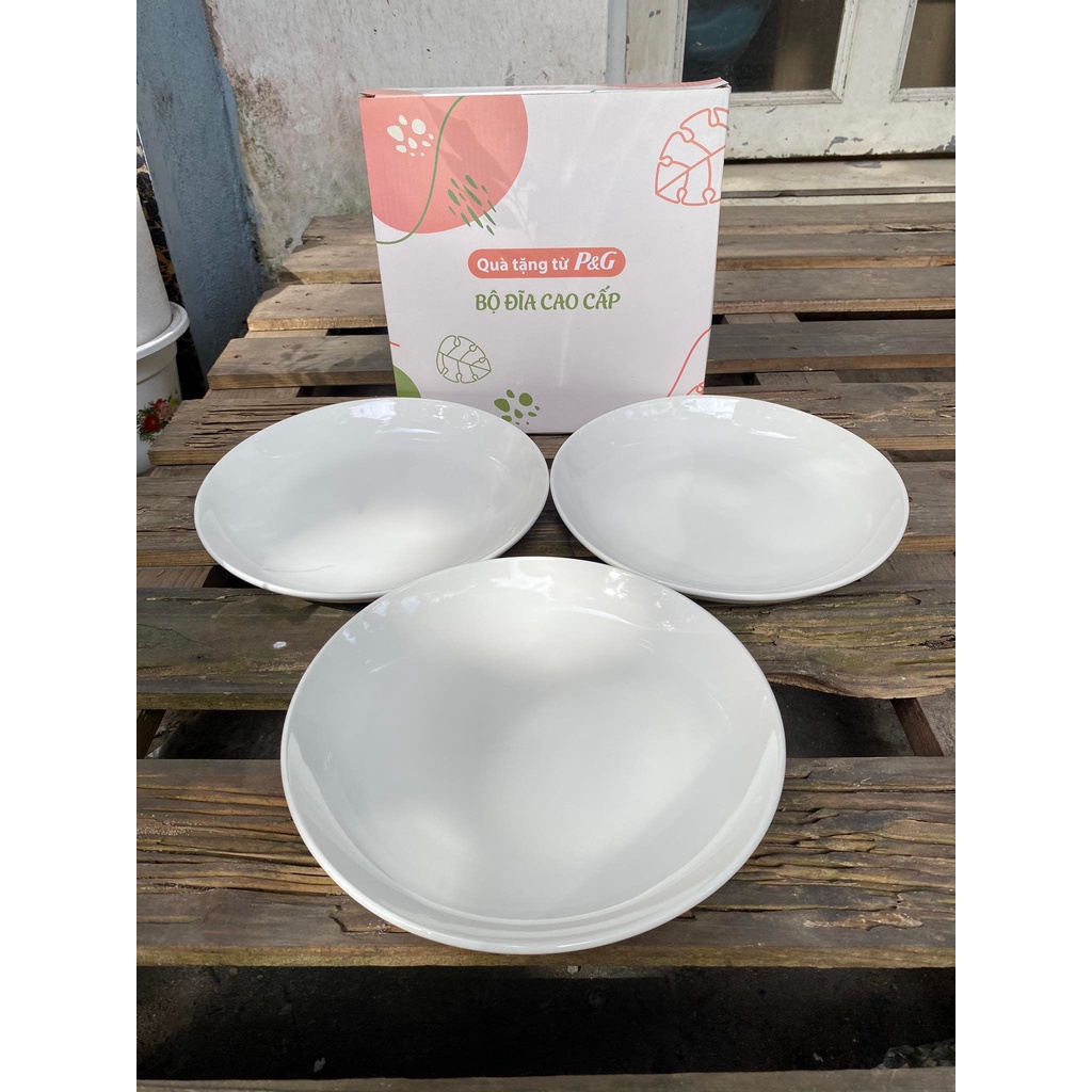 ( GIÁ SỐC ) Set 3 dĩa sứ trắng cao cấp 9in - đk 22cm