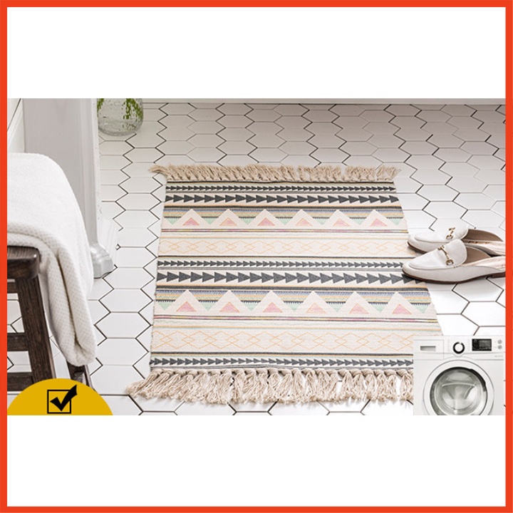 ✔ Thảm được dệt bằng vải cotton thấm hút cực tốt, đem đến sự gọn gàng cho căn phòng của bạn