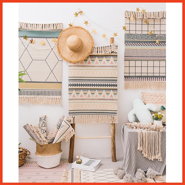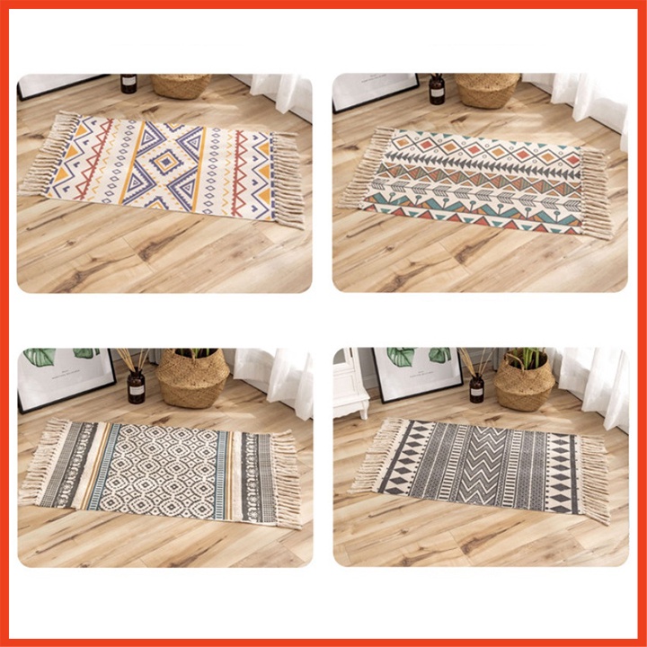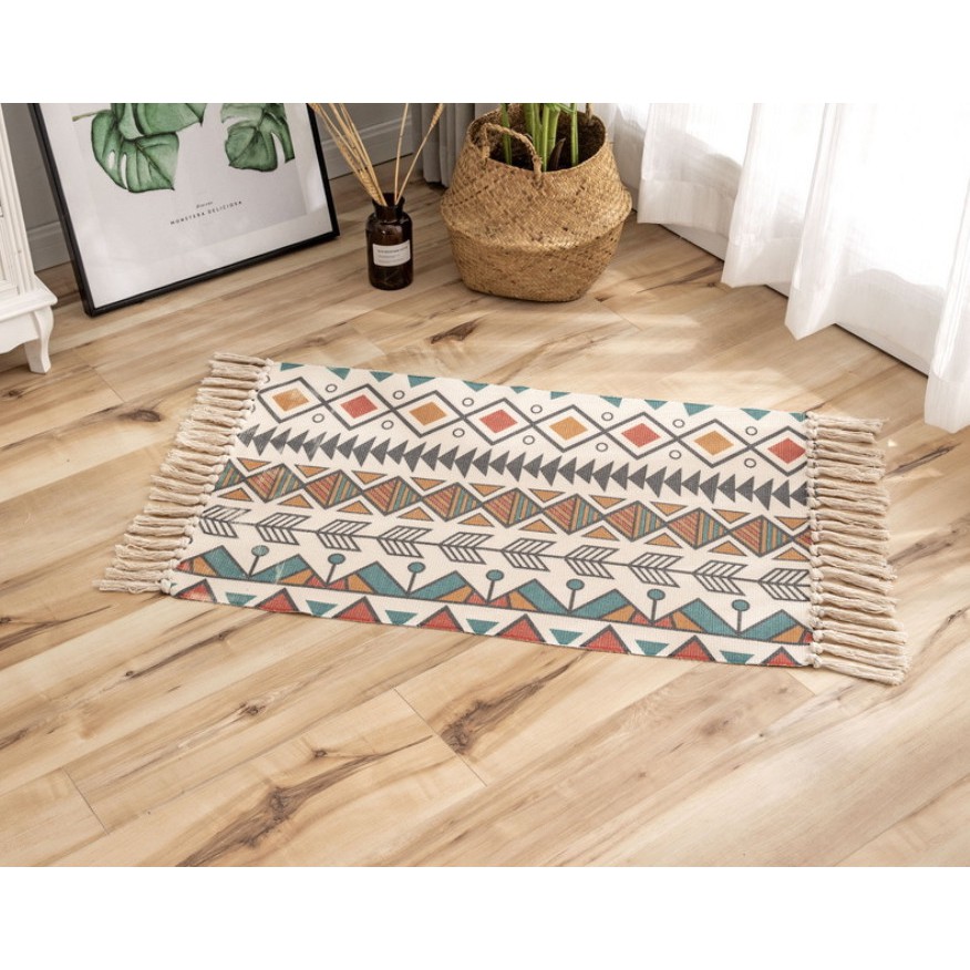 [Giảm giá sốc] Thảm trải sàn - Thảm chùi chân tua rua họa tiết độc đáo trang trí phòng phong cách vintage 60x90cm
