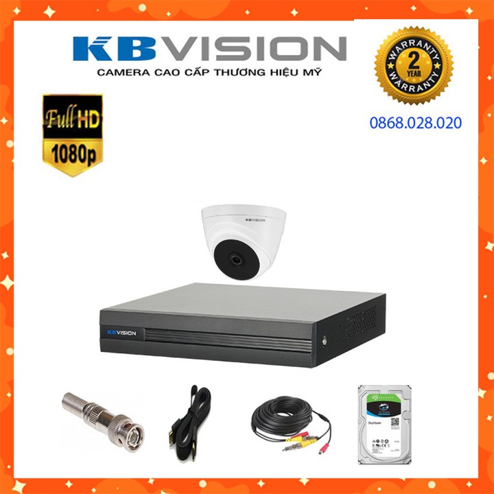 Giới thiệu [Mã ELHAMS5 giảm 6% đơn 300K] {Giá Sốc} Trọn Bộ 1 Mắt Camera 2.0M Full HD KBVISION +HDD 500G + 20 Mét Dây Liền Nguồn