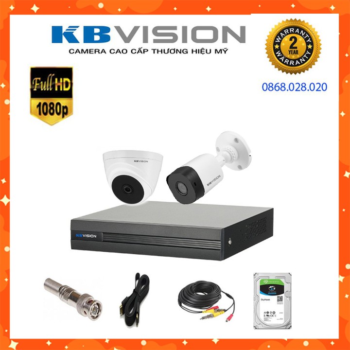 {Giá Sốc} Trọn Bộ 2 Mắt Camera 2.0M Full HD KBVISION +HDD 500G + 40 Mét Dây Liền Nguồn Bấm Sẵn Đầu