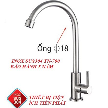 [GIÁ SỐC] Vòi Rửa Chén Lạnh INOX SUS304 Cao Cấp TN-700 Ống Phi 18 Bảo Hành 5 Năm Không Gỉ (Chính Hãng)