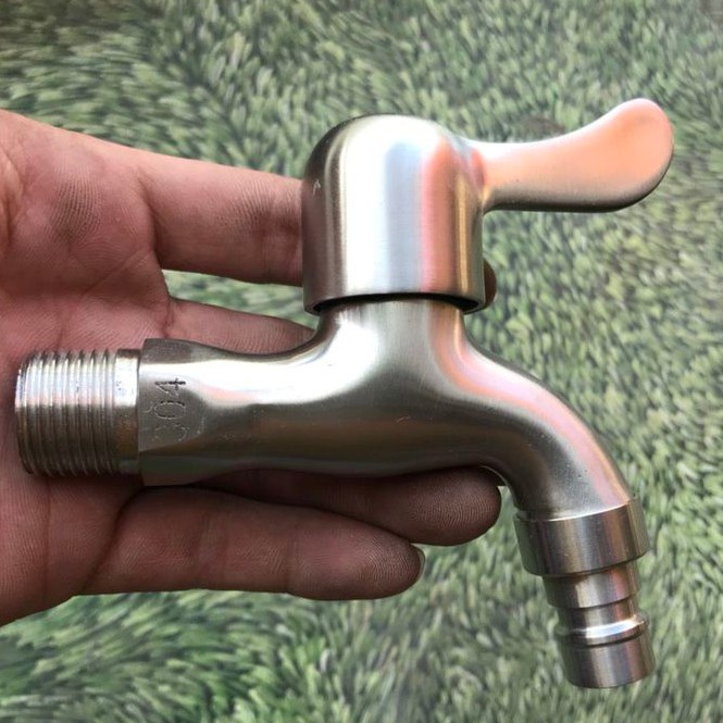 - Vòi nước inox 304 có đầu cấp là phi 21 thường dùng đối với mọi nhà dân, đầu xả có khấc nối nhanh có thể dùng để bắt vòi máy giặt hoặc khớp nối nhanh dẫn nước.