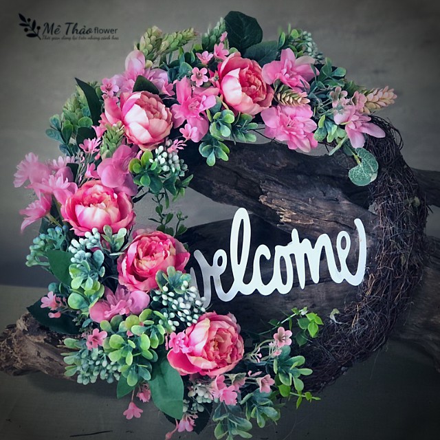 VÒNG HOA TREO CỬAMột vòng nguyệt quế treo cửa không những làm duyên cho ngôi nhà, nó còn là lời chúc may mắn mỗi sáng và lời chào ấm áp khi bạn trở về nhà mỗi chiều. Mê Thảo có những mẫu thiết kế cho mọi ngày trong năm, hoặc thay đổi theo mùa.