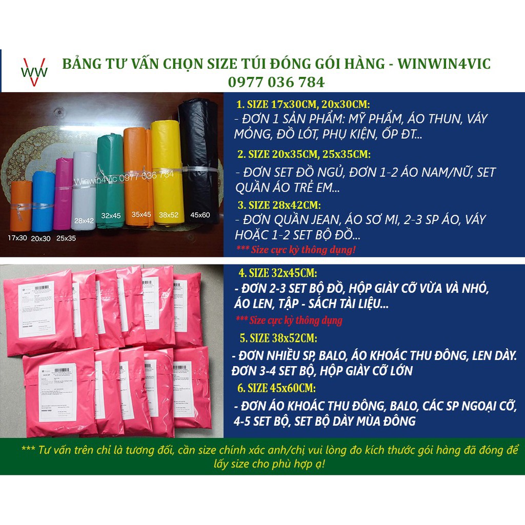 * Size 28x42: Cho đơn đơn 2sp vừa hoặc 1 sp lớn (quần bò, áo sơ mi) hoặc 2-4 sp quần áo trẻ em, phụ kiện