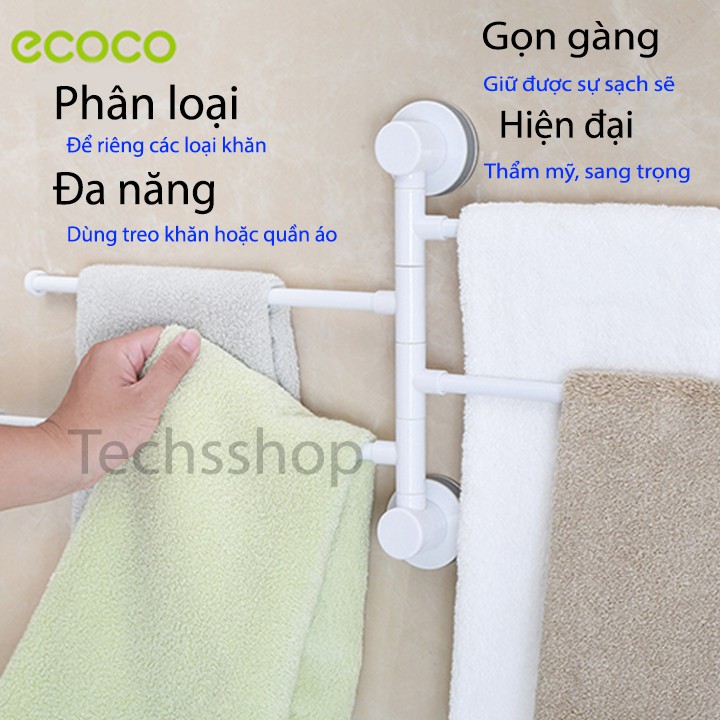 Giá Treo Khăn Tắm Dán Tường Ecoco E1610 Có 4 Móc Thanh Xoay 180 Độ