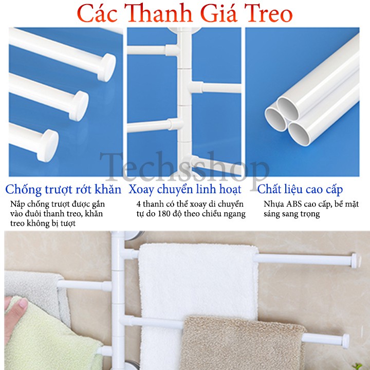 Các giá thanh ngang đều có gờ nhô cao ở mỗi đầu, giúp giữ cho khăn không bị rơi tuột ra ngoài rất tiện lợi. Bộ móc treo đa năng chống nước hiệu quả nhằm giúp tránh bị oxy hóa, ngăn ngừa vi khuẩn tích tụ lâu ngày có hại cho người dùng và dễ dàng vệ sinh lau chùi nhanh chóng.