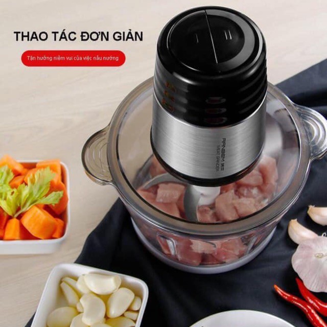 MÔ TẢ SẢN PHẨM : Máy xay thịt đa năng Ranbem Model 224A 300W 2 tốc độ lưỡi kép bảo hành 12 tháng