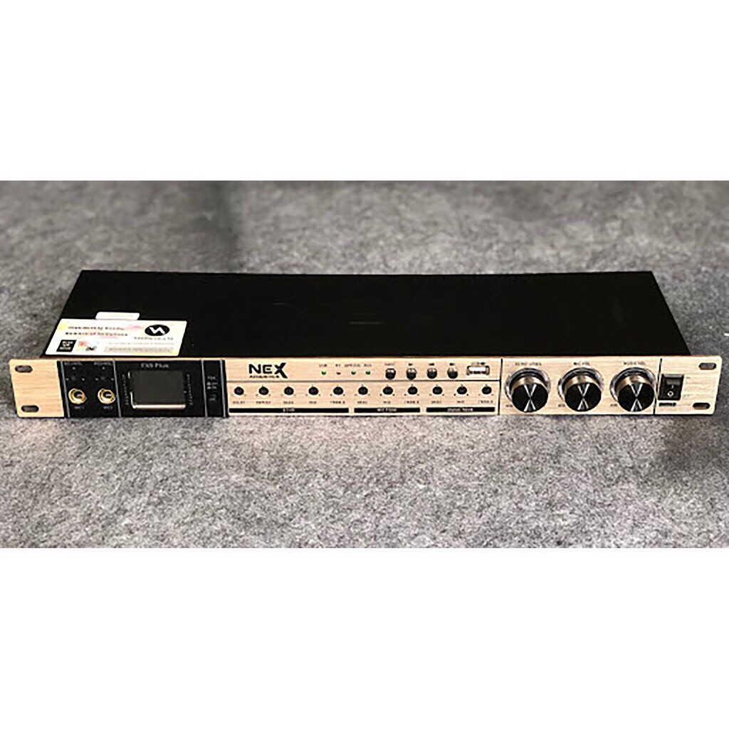 - Vang cơ N.E.X F.X9 Plus không có nhiều thay đổi về thiết kế so với Vang cơ N.E.X FX.8 và Vang cơ N.E.X F.X9 Limited, có thể kể đến một số chi tiết thay đổi trên Vang N.E.X F.X9 Plus như mặt trước được sơn lớp sơn màu vàng gold sang trọng thay cho màu bạc, tích hợp thêm một màn hình LCD hiển thị mới thay cho màn hình LED cũ. Còn lại mọi nút chỉnh chức năng và kết nối là giống nhau.