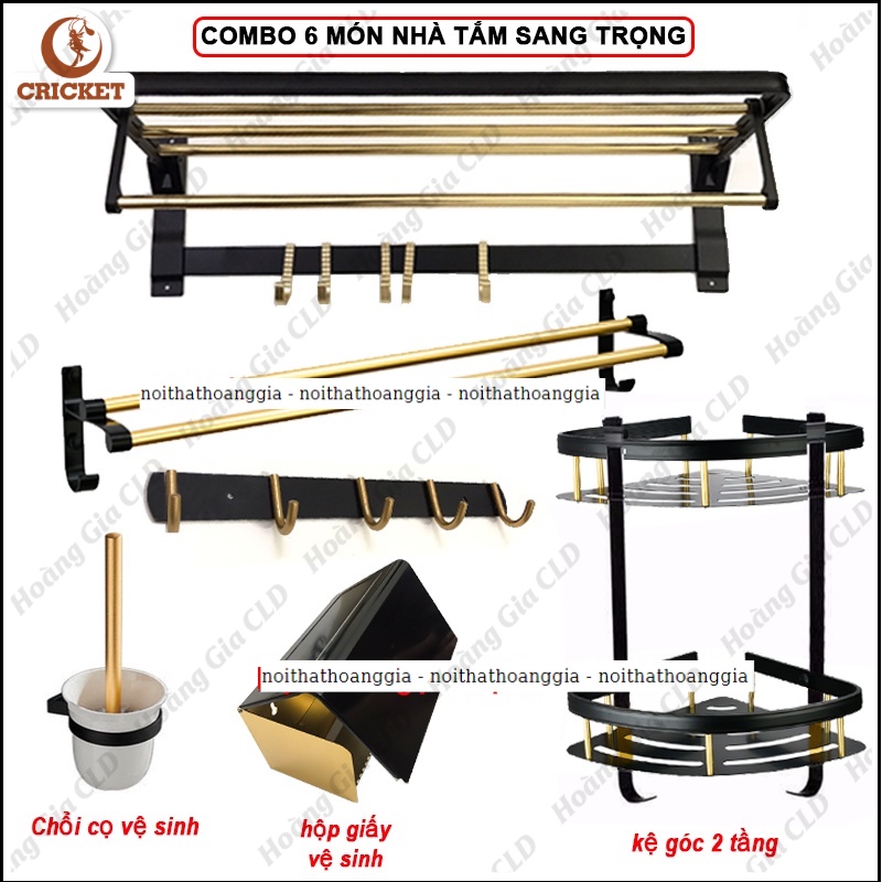 Nhà cửa & Đời sống > Đồ dùng phòng tắm > Kệ để đồ phòng tắm || [GIÁ TỐT] Combo 6 món phụ kiện phòng tắm sơn nano tĩnh điện Đen Vàng sang trọng, chống xước, không bong trócCòn hàng