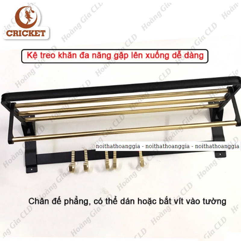 (1) Kệ khăn tắm đa năng 2 tầng, khung có thể gập lên xuống, dài 60cm. Mặt chân đế đúc chắc chắn, bề mặt tiếp xúc với tường phẳng nên có thể dán hoặc dùng vít cố định