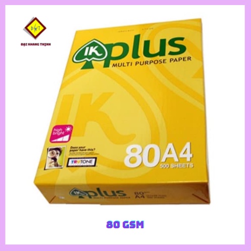 - Giấy In A4 IK Plus là giấy dùng để in, photo, làm phiếu xác nhận đơn hàng, giấy thu- chi, phiếu xuất - nhập, hoặc đóng thành cuốn dày để làm sổ ghi.