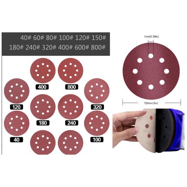 Giới thiệu [GIÁ TỐT] Giấy ráp tròn 8 lỗ 180mm mài tường cát thô cc36/40