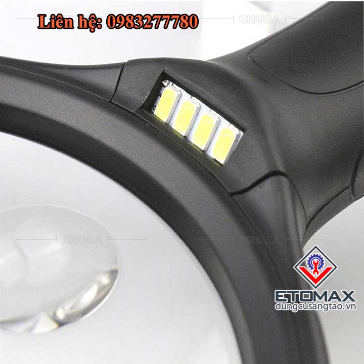 - Kính lúp được tích hợp 4 đèn led siêu sáng chiếu sáng khi soi mẫu