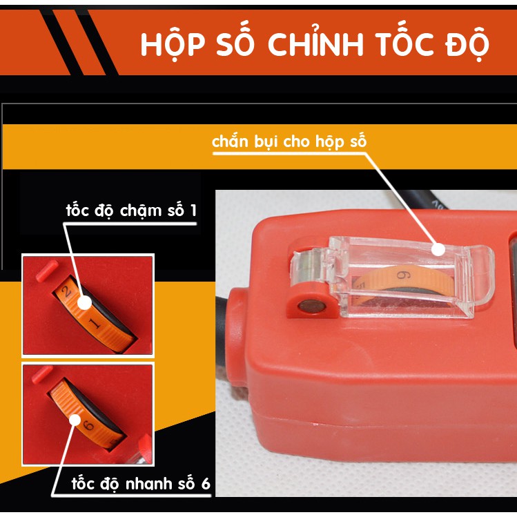 - Máy có hộp số 6 cấp độ làm việc, chà tường cực nhanh so với kiểu thi công truyền thống, tăng năng suất, rút ngắn thời gian thi công.