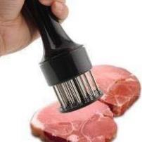 ❸ - Kiểu dáng nhỏ gọn, vừa vặn tay cầm, làm bằng chất liệu nhựa, inox bền và an toàn cho sức khỏe, giúp làm mềm thịt, bít tết trước khi ướp gia vị