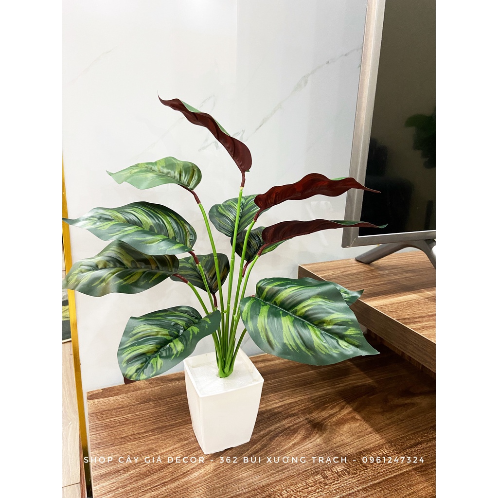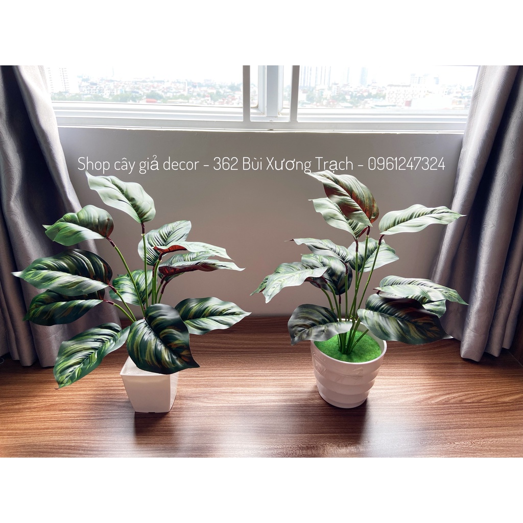 Cây giả trang trí FREESHIP Cây nhựa 12 lá pvc - trầu bà đế vương