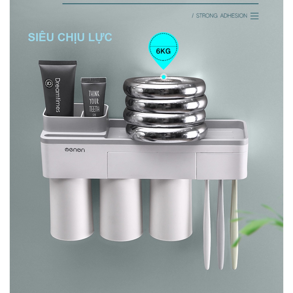 • Thiết kế cốc đáy từ tính hút ngược giá treo đồ, không đọng nước, giúp ly và bàn chải luôn khô ráo