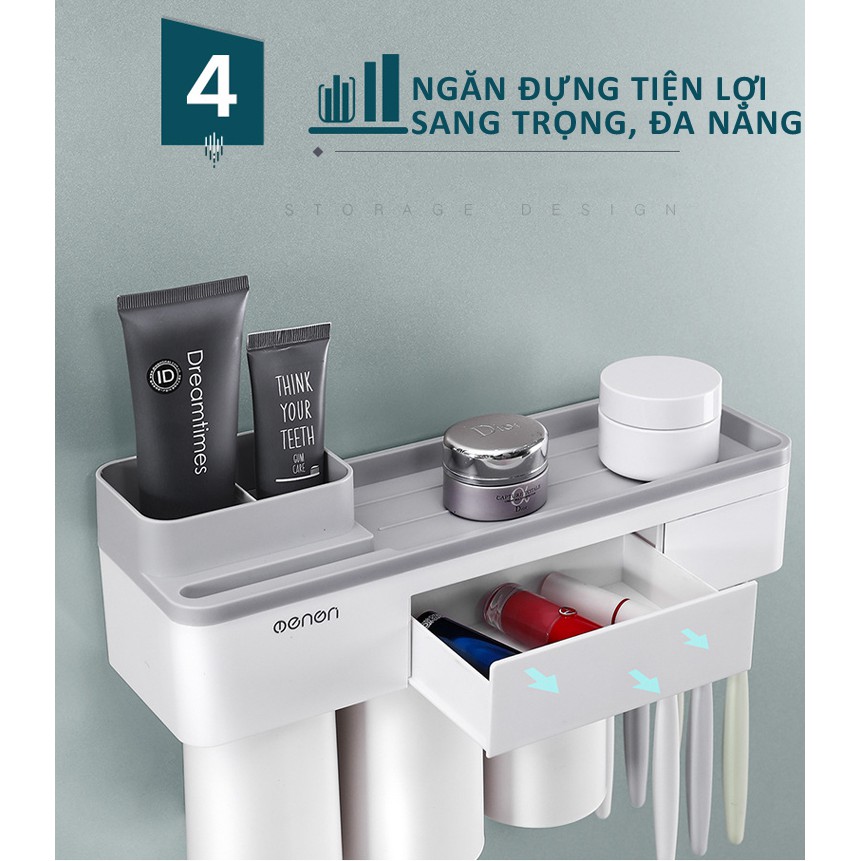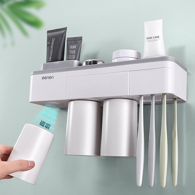 Giá Treo bàn chải dán tường phòng tắm sang trọng, kệ treo bàn chải và ly súc miệng nam châm (tặng kèm ly)